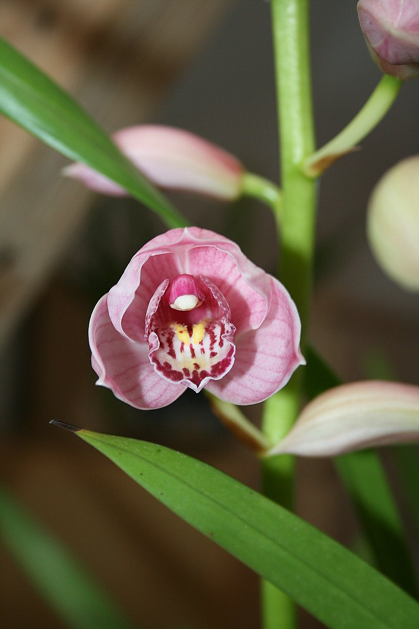 Cymbidium goeringii. die wächst im warmen halbschatten ganzjährig im freien. besser ausgepflanzt in ein wasserdurchlässiges saures orchideenbeet, als im topf. im topf wachsende pflanzen erfrieren leicht bei rauhen wintern.
