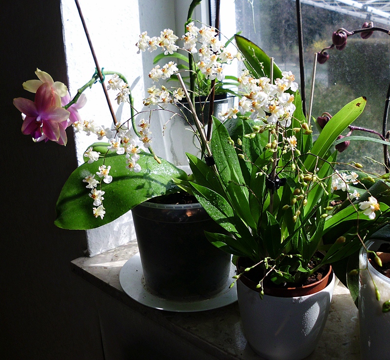 ja mir ist kürzlich auch eine Vanda verbrannt, aber sie blüht trotzdem. Meine Orchideen sind an Sonne gewöhnt, aber an heissen Tagen lasse ich auch die Jalousien runter. Ich habe welche, die man sehr genau variieren kann, so dass die Stube trotzdem hell bleibt, die Pflanzen aber nicht verbrennen