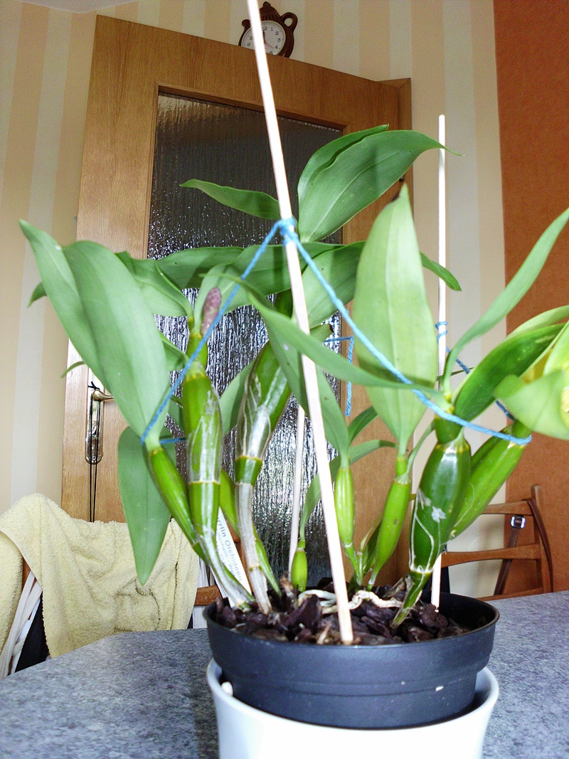 Da kann ich mit meinen beiden Cattleyas ja nicht mithalten, seufz. Früher habe ich mit denen auch nie Glück gehabt, aber seitdem ich sie immer kühl halte, klappt´s mit den Bulben und Knospen.