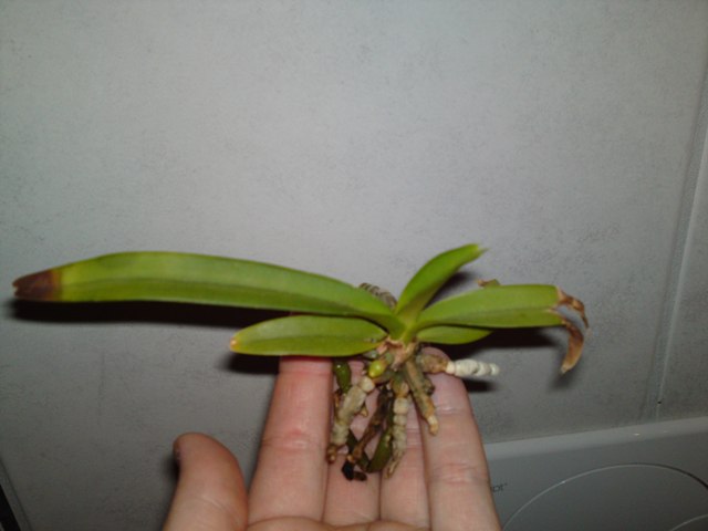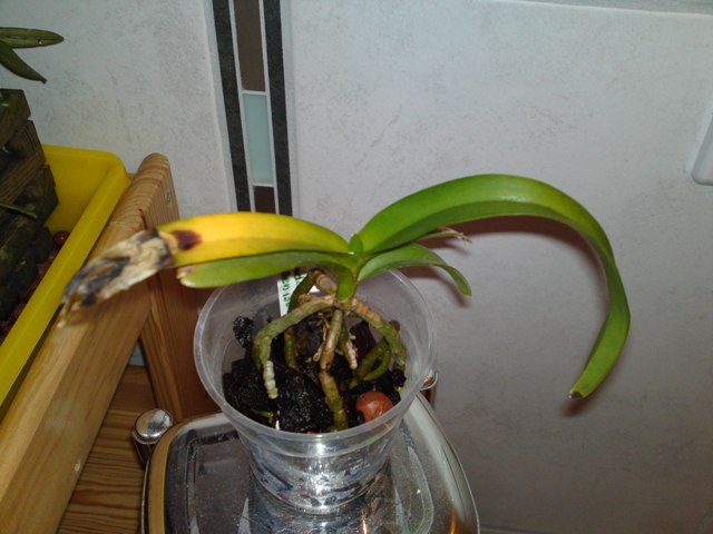 von meiner kleinen Vanda wird ein Blatt immer gelber.
