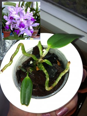 Achja und mein kleinstes etwas - die Babycattleya, wurde hier unterschlagen! Es ist eine "Cattleya Interglossa - Amethystoglossa x Intermedium - Jungpflanze. Neulich ist sie mir auf den Boden gekracht und in zwei Teile grbrochen...beide Teile wachsen aber immernoch munter weiter. Sie werden jeden Tag besprüht, weil der Tops so klein ist und schnell austrocknet und einer der Teile macht glaub jetzt neue Blätter...in 2-3 Jahren wird sie hoffentlich mal so blühen, wie oben abgebildet (wenn ich sie bis dahin nicht nochmal runterwerfe )