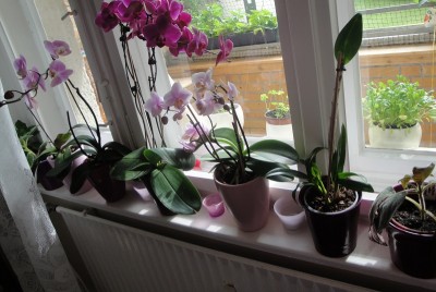 Die rosane in der Mitte schaffe ich es nicht seit über einem Jahr umzutopfen, da sie einfach keine Blühpause macht... Sie hat unter den Wurzeln aber aufjedenfall eine Art ,,Schwamm", schadet ihr aber bis jetzt scheinbar nicht genug... Nun hat sie auch einen Kindel mit inzwischen Wurzeln an einer Rispe entwickelt, davon müsste ich mal ein aktuelles Foto machen (ist von Anfang Juni).
