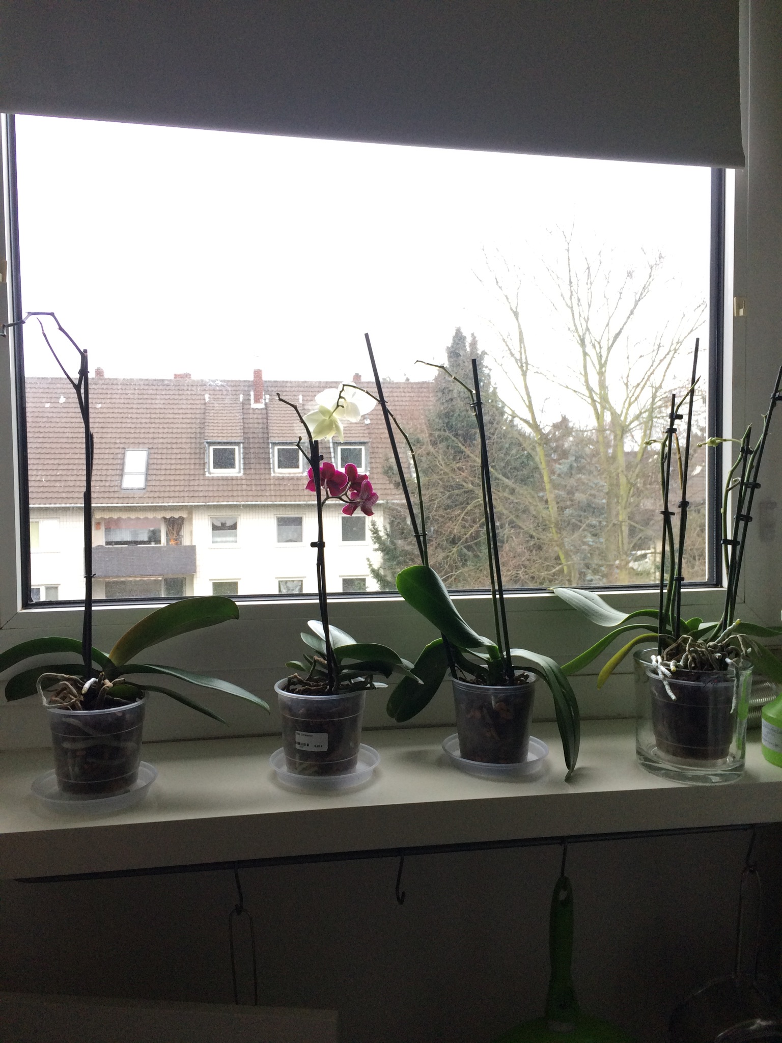 Ach, schluchz, die Orchideen sind bis auf eine aufgrund Krankheit alle eingegangen, und genau diese Letzte macht mir auch noch Kummer, weißt du vielleicht Rat oder die anderen ? Sie hat einen unnatürlich langen Blütentrieb mit nur wenigen Knospen am Ende produziert. Kenne ich so gar nicht, sieht auch doof aus; ich bezweifle, dass diese Knospen jemals aufgehen...