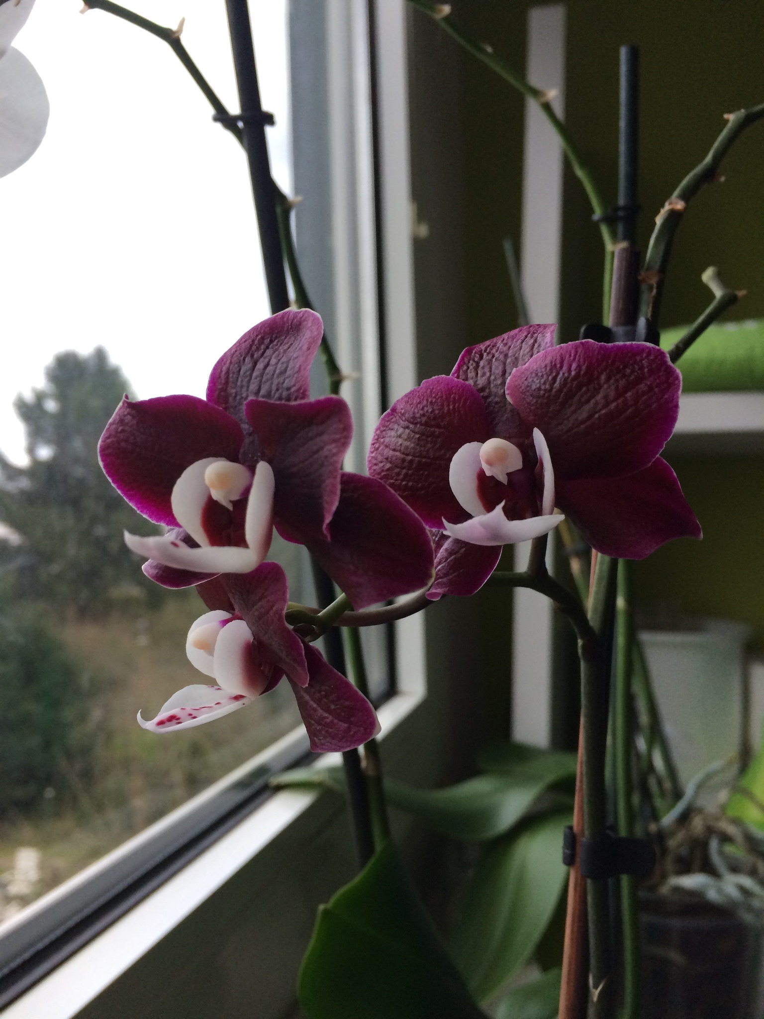 ich möchte euch auch mal meine bescheidene Orchideensammlung zeigen. Es sind vier Stück an der Zahl und sie stehen an einem Ostfenster in der Küche. Es scheint ihnen dort auch recht gut zu gefallen. Aktuell haben zwei von ihnen auch wieder Blüten. Eine schiebt ordentlich Knospen und die vierte scheint zu ruhen, wobei ich meine einen werdenden Blühtrieb entdeckt zu haben.