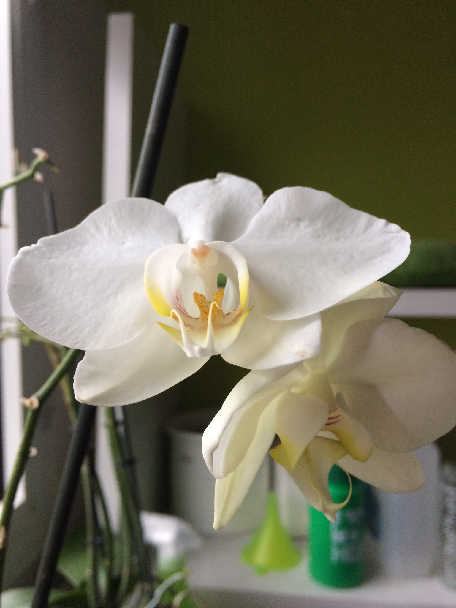 ich möchte euch auch mal meine bescheidene Orchideensammlung zeigen. Es sind vier Stück an der Zahl und sie stehen an einem Ostfenster in der Küche. Es scheint ihnen dort auch recht gut zu gefallen. Aktuell haben zwei von ihnen auch wieder Blüten. Eine schiebt ordentlich Knospen und die vierte scheint zu ruhen, wobei ich meine einen werdenden Blühtrieb entdeckt zu haben.