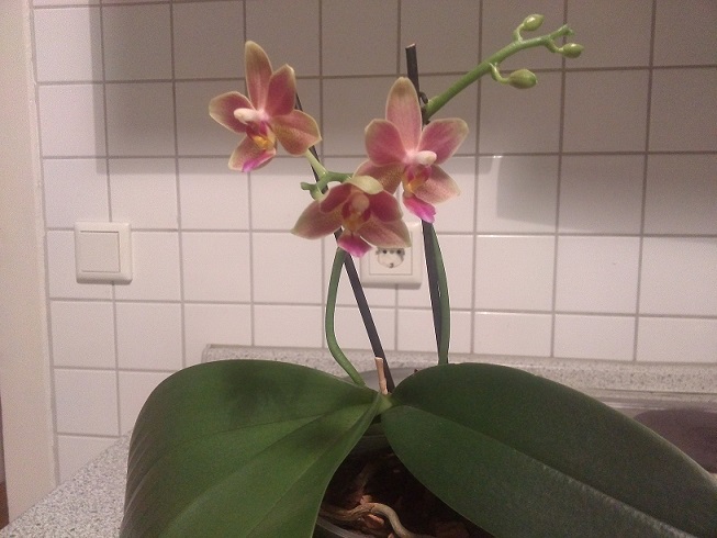 So, nun kann ich endlich auch meine Orchideen zeigen, wie angekündigt! Hat jetzt doch noch zwei Wochen gedauert, bis alle vorzeigbar waren und mehrere Blüten geöffnet haben!