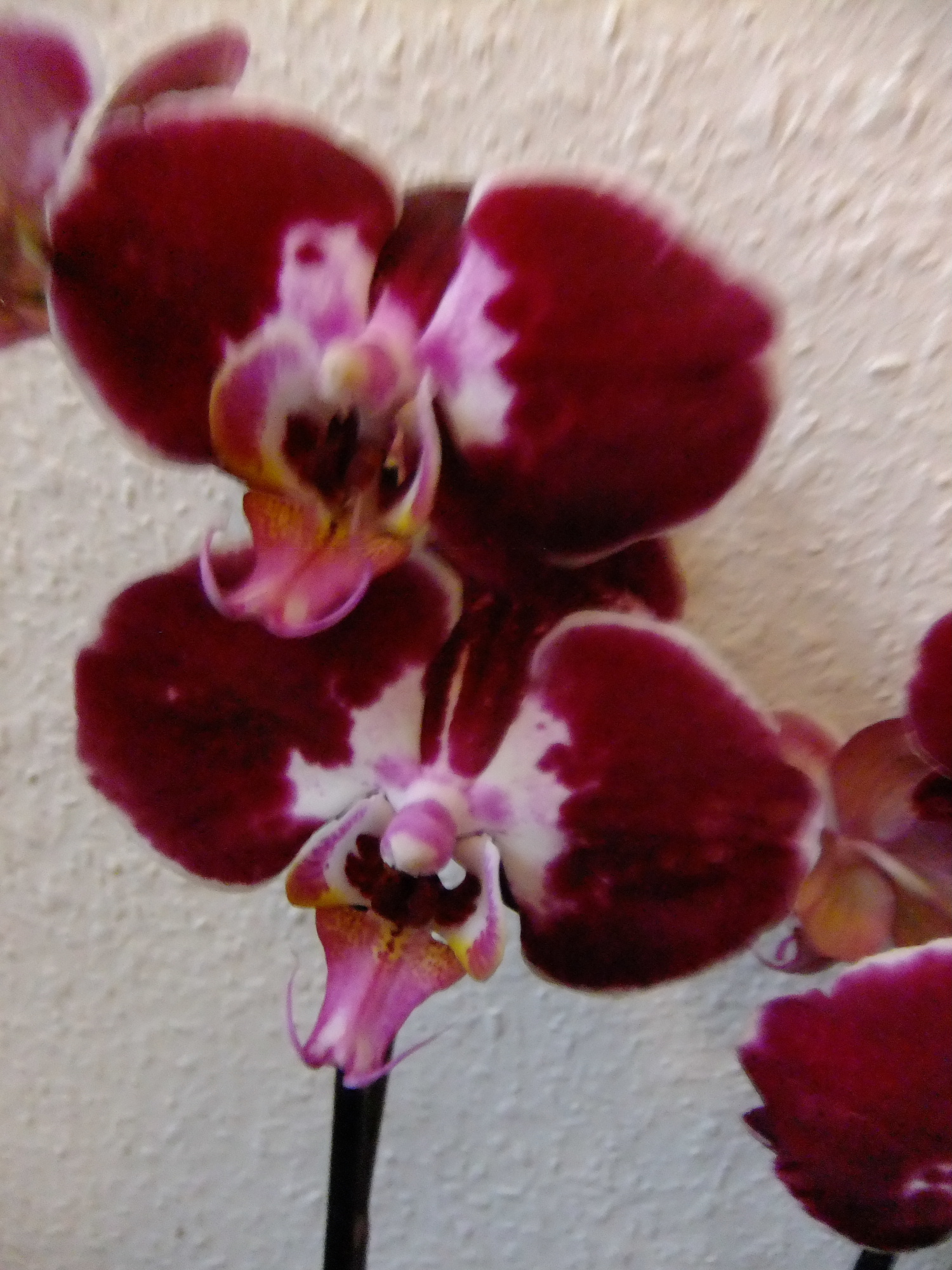 Dafür zeige ich Euch mal jetzt die Blüten der ebenfalls geretteten Dendrobium phalaenopsis Hybride mit lieben Grüßen: