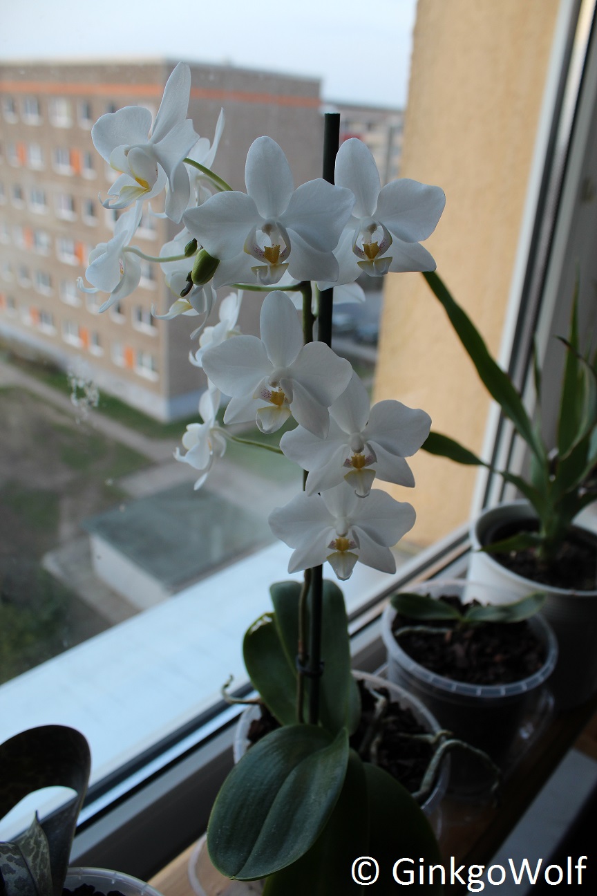 Hinsichtlich der Blütenform der Einzelblüte fühle ich mich sehr an meine weiße Orchidee erinnert. Vllt hab ich ja Glück und die Kleine blüht auch mal so überschwänglich.