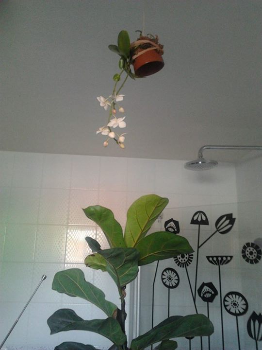 ich hab einen kleinen topf, der feuchtigkeit speichert, verkehrtherum neben/über der dusche aufgehängt, mit viel sphagnum umwickelt, mit einer strumpfi festgemacht - und mittlerweile hält es schon (fast) von allein.