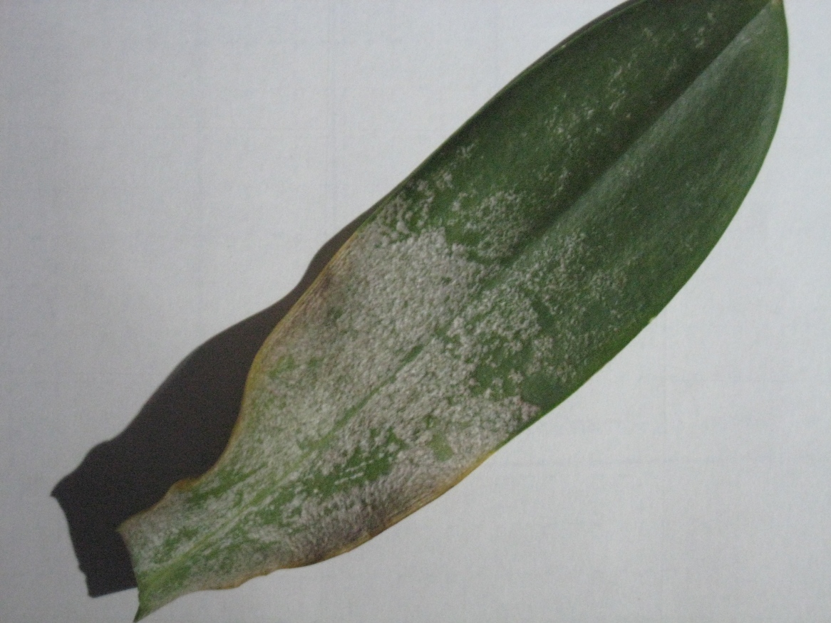 ich habe ein - nein, nicht nur eins - Problem mit meinen Orchideen. Alle Orchideen in meinem Wohnzimmer bekommen langsam Blätter, die schlaff wie ein Waschlappen werden; ich weiß nicht woran das liegt. Jetzt noch die Krone drauf: jetzt bekommen die Blätter die im Bild zu erkennende Krankheit.