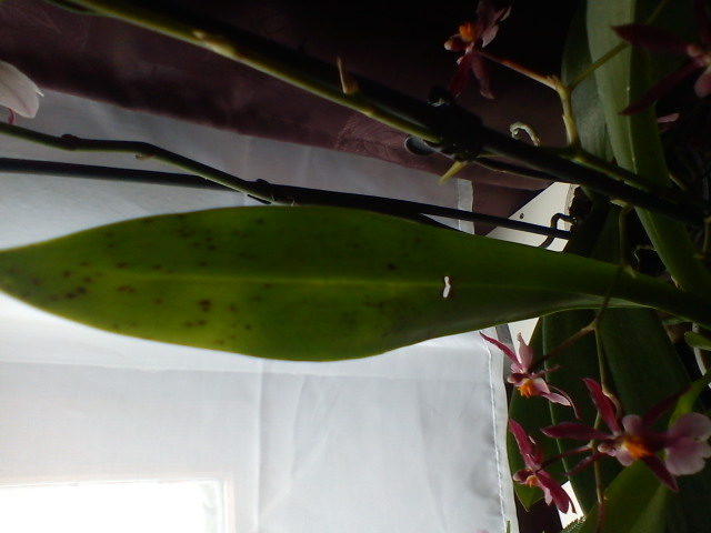 ich habe ein Problemchen mit der Oncidium. Ich hatte sie mit so kleinen schwarzen Flecken ausm Gartencenter gekauft, ich dachte, dass das ein Sonnenbrand wäre... Nun hab ich im Internet nach der Pflege von Oncidium gesucht und dabei ist mir aufgefallen, dass Sonnenbrand ganz anders aussieht als die Flecken die ich da habe....Ich habe euch mal ein paar Fotos gemacht und hoffe auf eine Diagnose. Ich möchte natürlich nicht dass mir diese schöne Pflanze kaputt geht