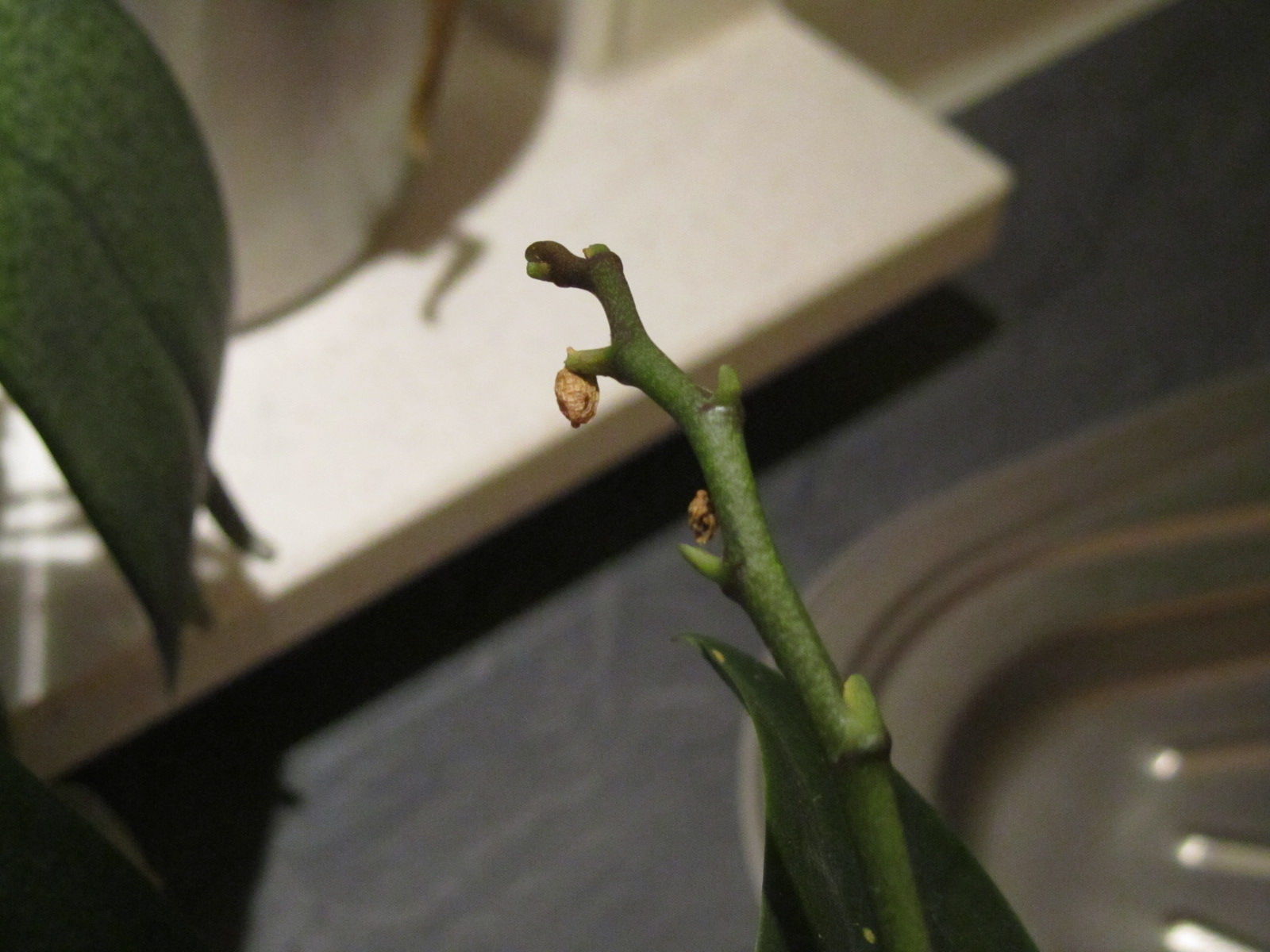 Mein Problem besteht nicht darin, dass Wurzeln vertrocknet sind, auch, wenn das ein aktuelles Problem der Pflanze ist, sondern dass ich nicht weiß, was ich mit den Blütenstielen (sowohl den alten als auch dem neuen, an dem Knospen vertrocknet sind) anstellen soll.