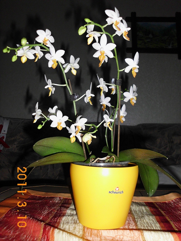 Hab gestern im Baumarkt auch eine einfache Phal, aber mit genau der gleichen Farbkombi gesehen. Da hab ich ganz schön mit mir gerungen (Verstecke gehen langsam aus ). Und dann sah ich das Elend: sie war voller Schildläuse.