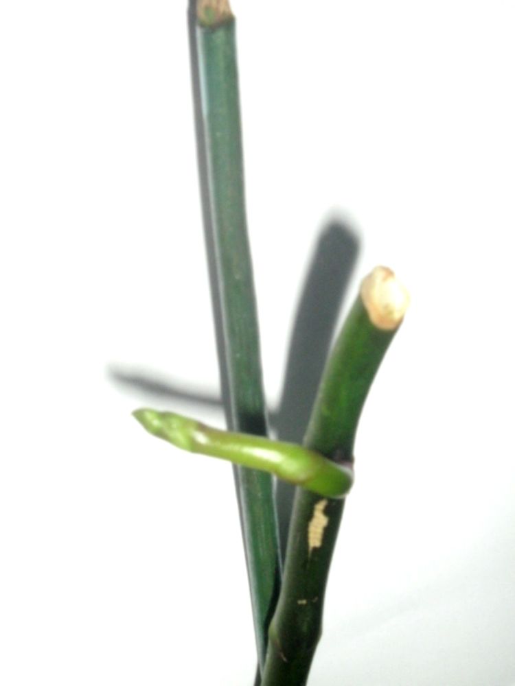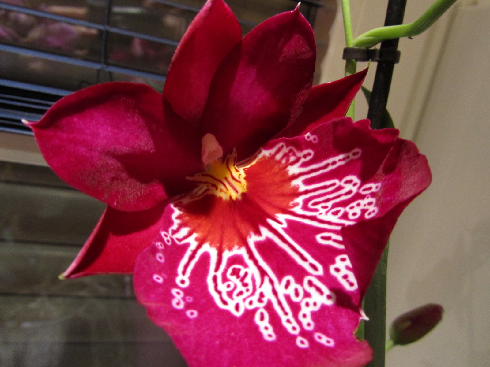 Erst stand sie viel zu warm (bis zu 30°C), so daß sie sehr schnell verblühte. Außerdem war die Luftfeuchtigkeit zu niedrig, was sie mit Knitterwuchs an den Neutrieben quittierte.