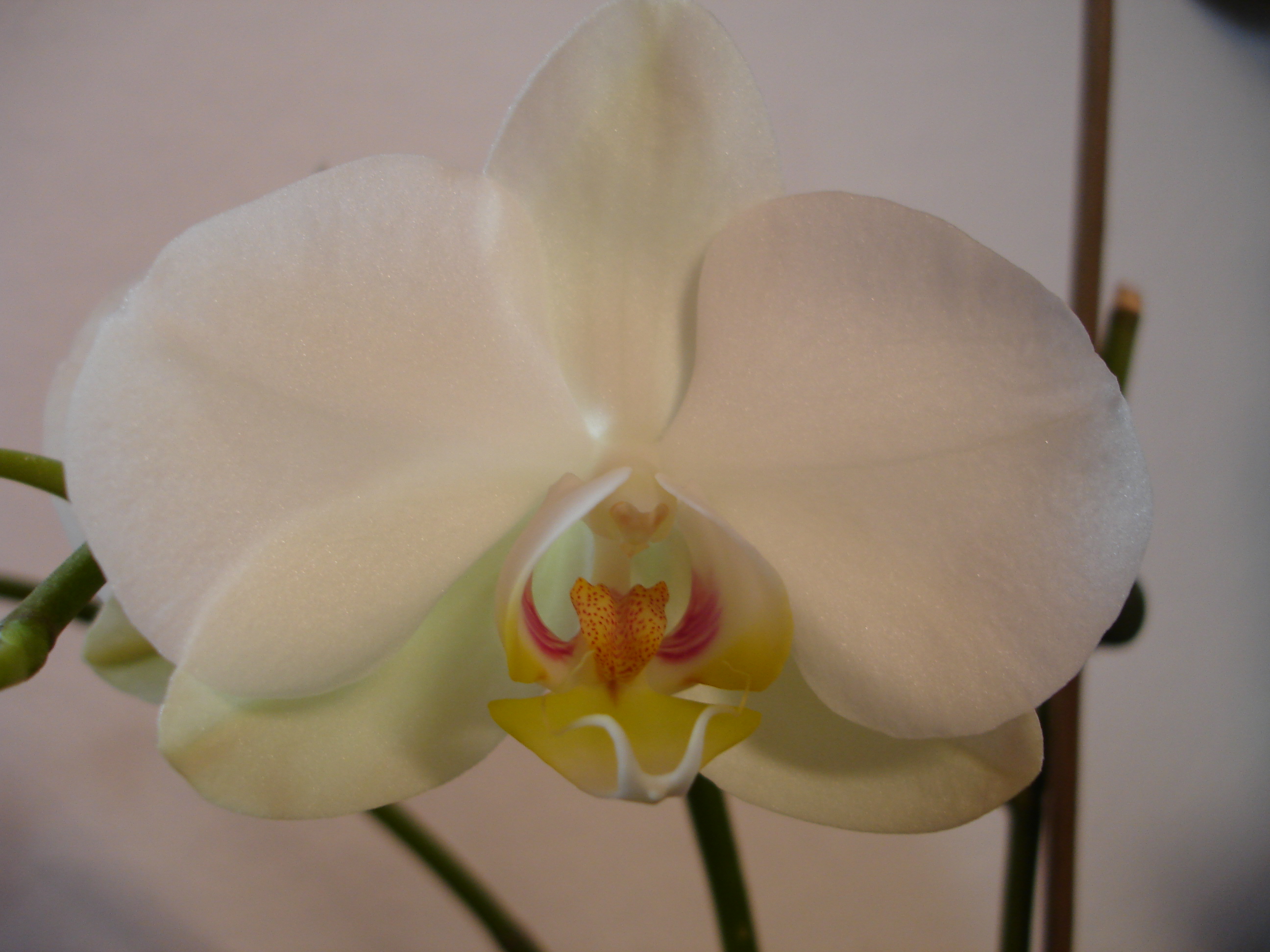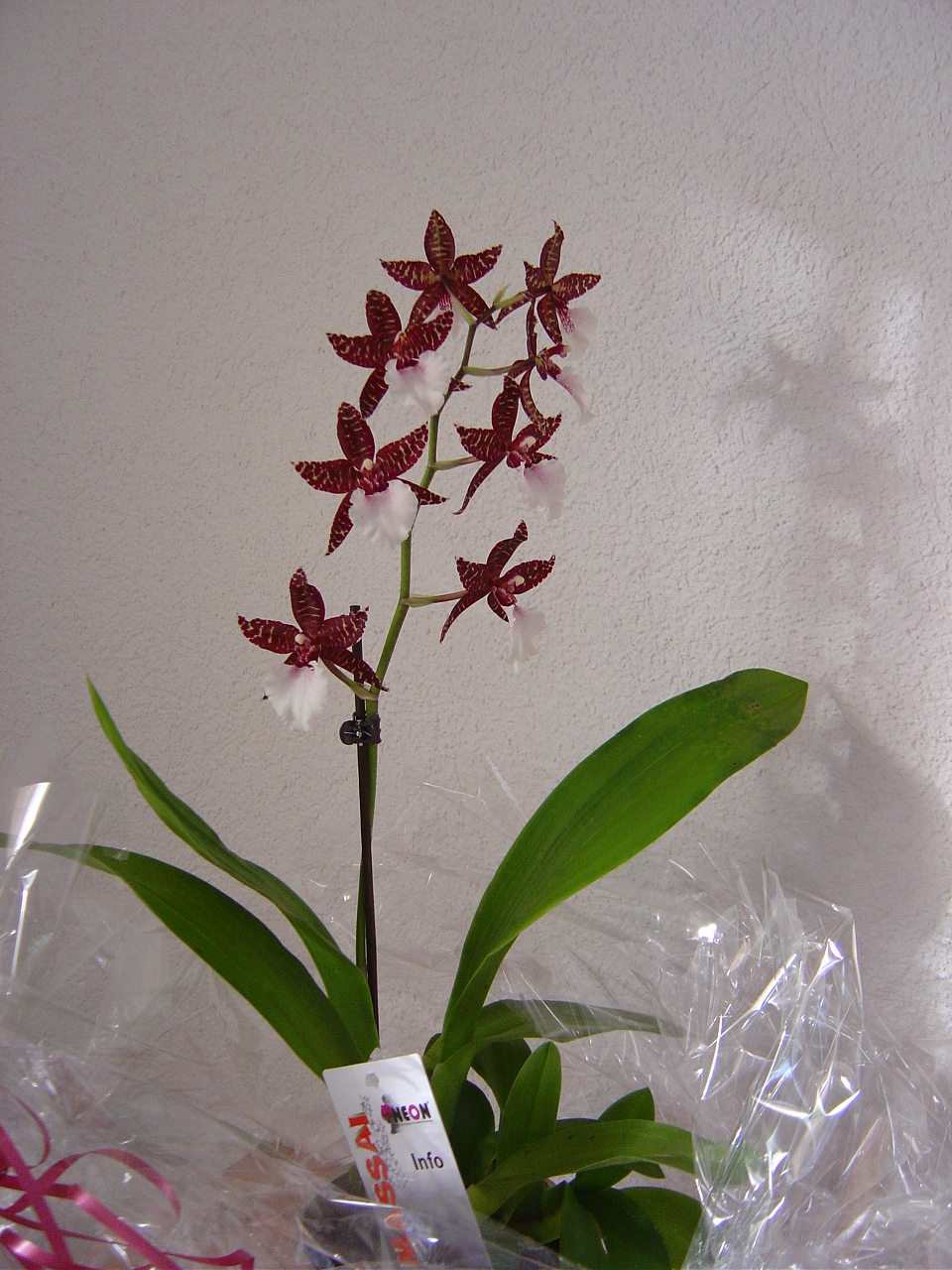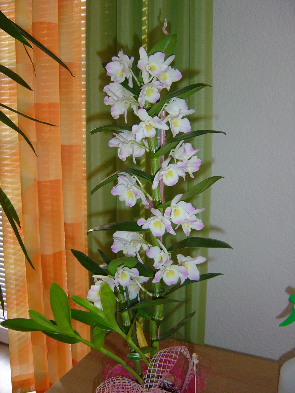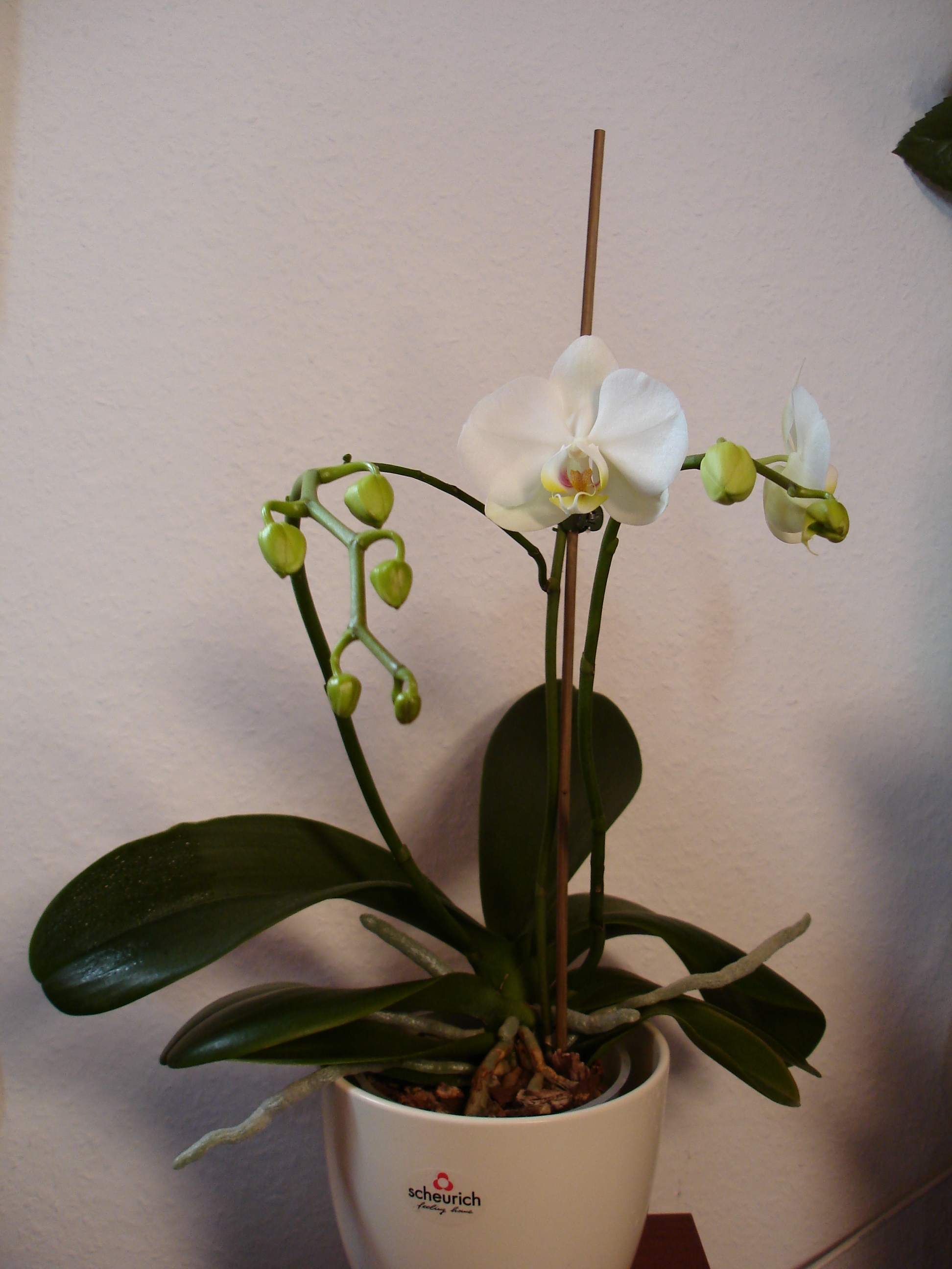 hab mir vorhin eine leicht zerknitterte und reduzierte miltonia gekauft. die gute muß ein bißchen gepäppelt werden, nachdem ich ihr das moos unter den wurzeln und das grüne saugende zeugs dazwischn entfernt hab...