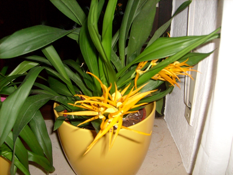 Bei meiner Rettungsaktion hab ich gesehen, dass meine "Brassia" überall Austriebe kriegt - ich weiß nur noch nicht, ob es Blütentriebe oder Kindel werden!!!