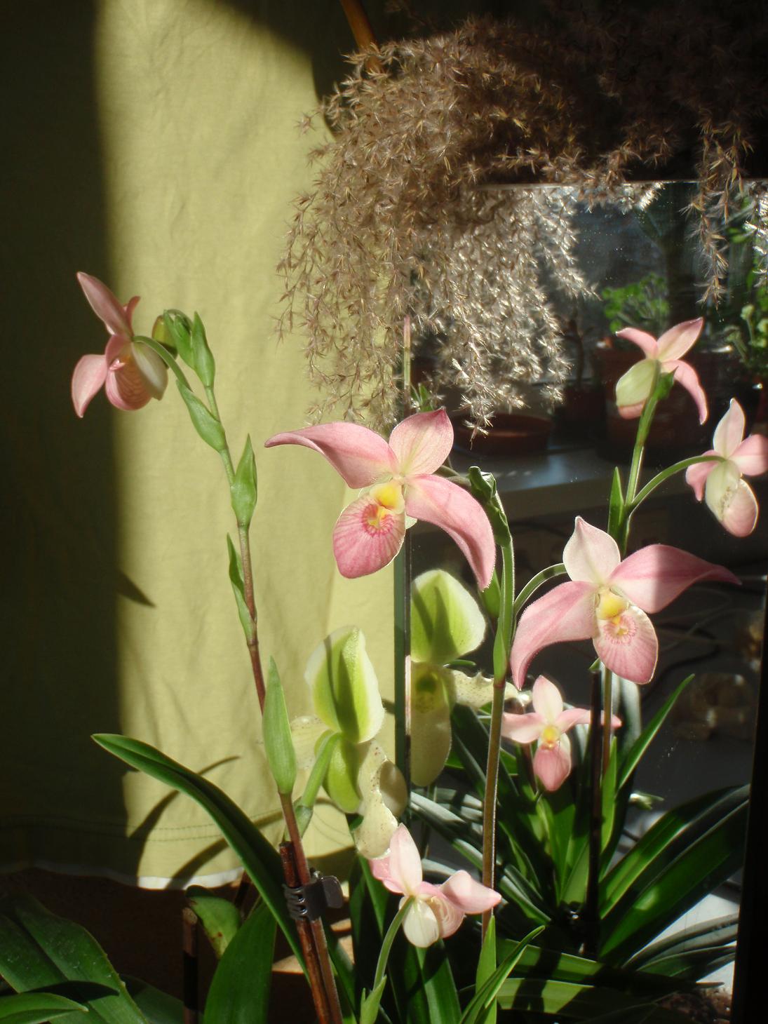 Habe im Büro zwei Phalaenopsis zustehen, die mich nach fast einem Jahr endlich wieder mit Blüten erfreuen