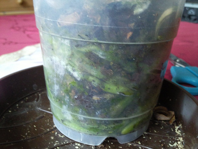 Und ich hab mal versucht die Bewurzelung zu fotographieren, ich finde der Topf ist schon ganz gut voller Wurzeln, größeren nehmen?