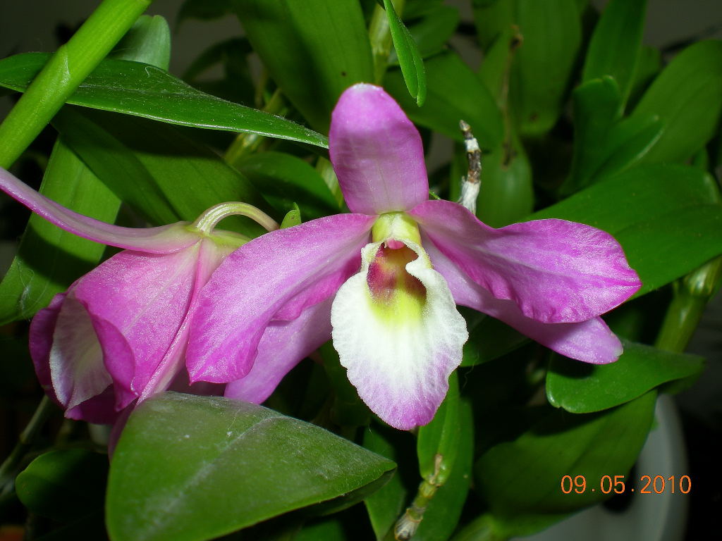 Bei mir hat jetzt eine unbekannte Dendrobie 3 Blüten geöffnet. Hab ich mal auf einer Ausstellung geschenkt bekommen, damit ich ein Probeobjekt zum Aufbinden hab. Hab sie trotzdem im Topf. Ob das der Grund für die ärmliche Blütenausbeute ist? Die ersten Blüten im vorletzten Jahr waren auch viel heller.