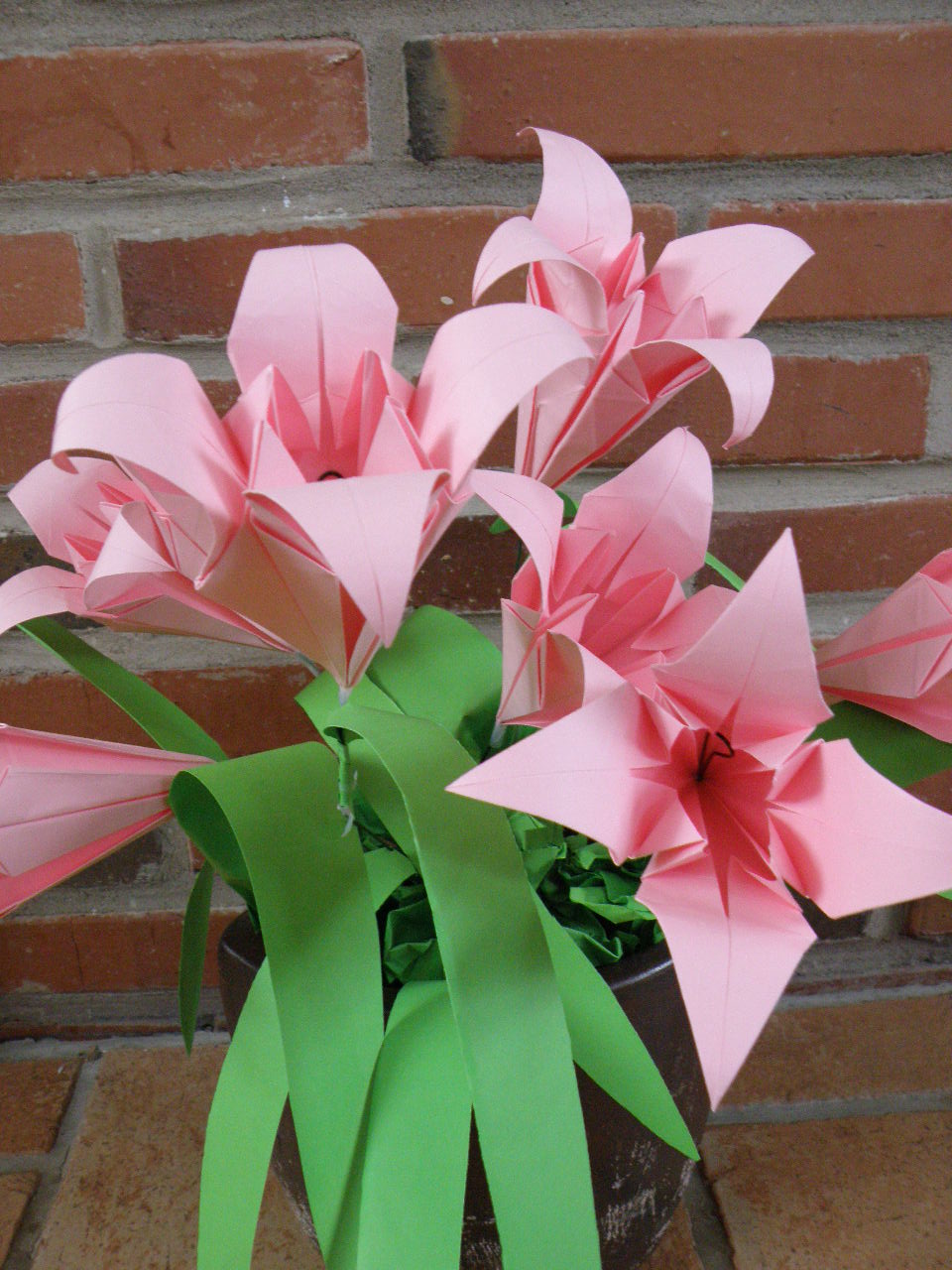 Die Clematis-Origamipflanze sieht auch toll aus. Da muß man nur aufpassen das sie nicht in der Sonne steht, sonst bleicht sie aus.