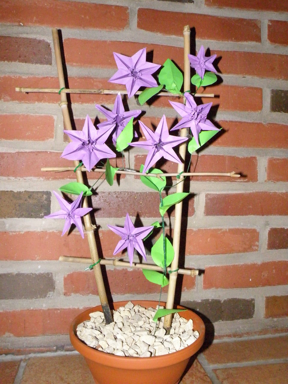 Die Clematis-Origamipflanze sieht auch toll aus. Da muß man nur aufpassen das sie nicht in der Sonne steht, sonst bleicht sie aus.