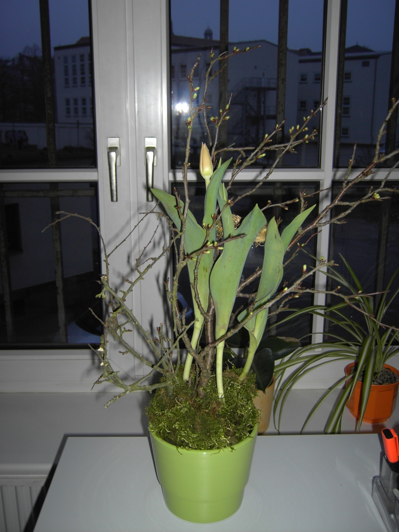 Die Tulpen und die Äste haben geblüht.