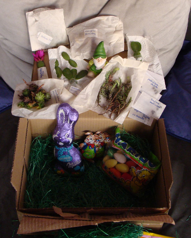 Also, mein lieber Wichtel, ich hab mich tierisch gefreut Da sind so schöne neue Sachen drin, die ich gerne ausprobiere in der Hoffnung irgendwann die wunderschönen Blüten zu haben, die Google mir gerade zeigte Die Osterkakteen werde ich heute auch noch eintopfen, die sehen ein wenig flau aus, aber sonst ganz fit.