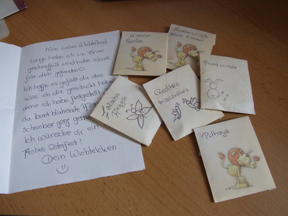 habe heute morgen mein Päckchen ausgepackt und wollte mich ganz herzlich für die vielen schönen Samen bedanken. Ich habe mich riesig gefreut.