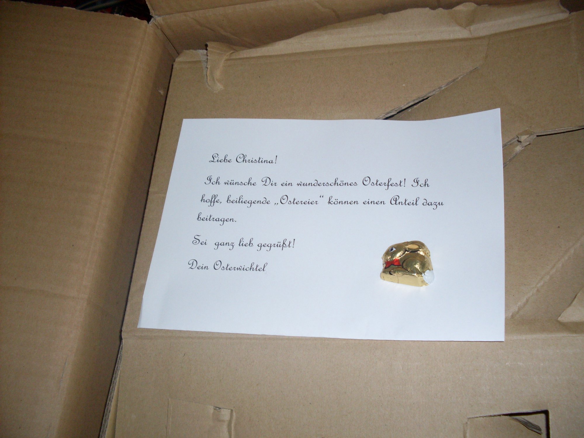 Danke auch für die Nascherei und die nette Osterkarte.