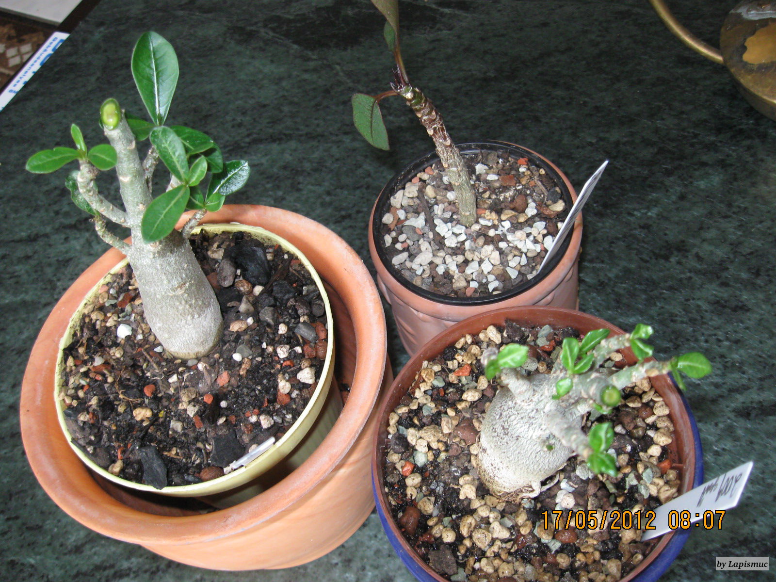 Mein Osterwichteladenium kriegt die ersten Blättchen, nachdem es durch den Transport alle abgeschmissen hatte. Die andere Plumeria und das Adenium brauchen noch ein bisserl
