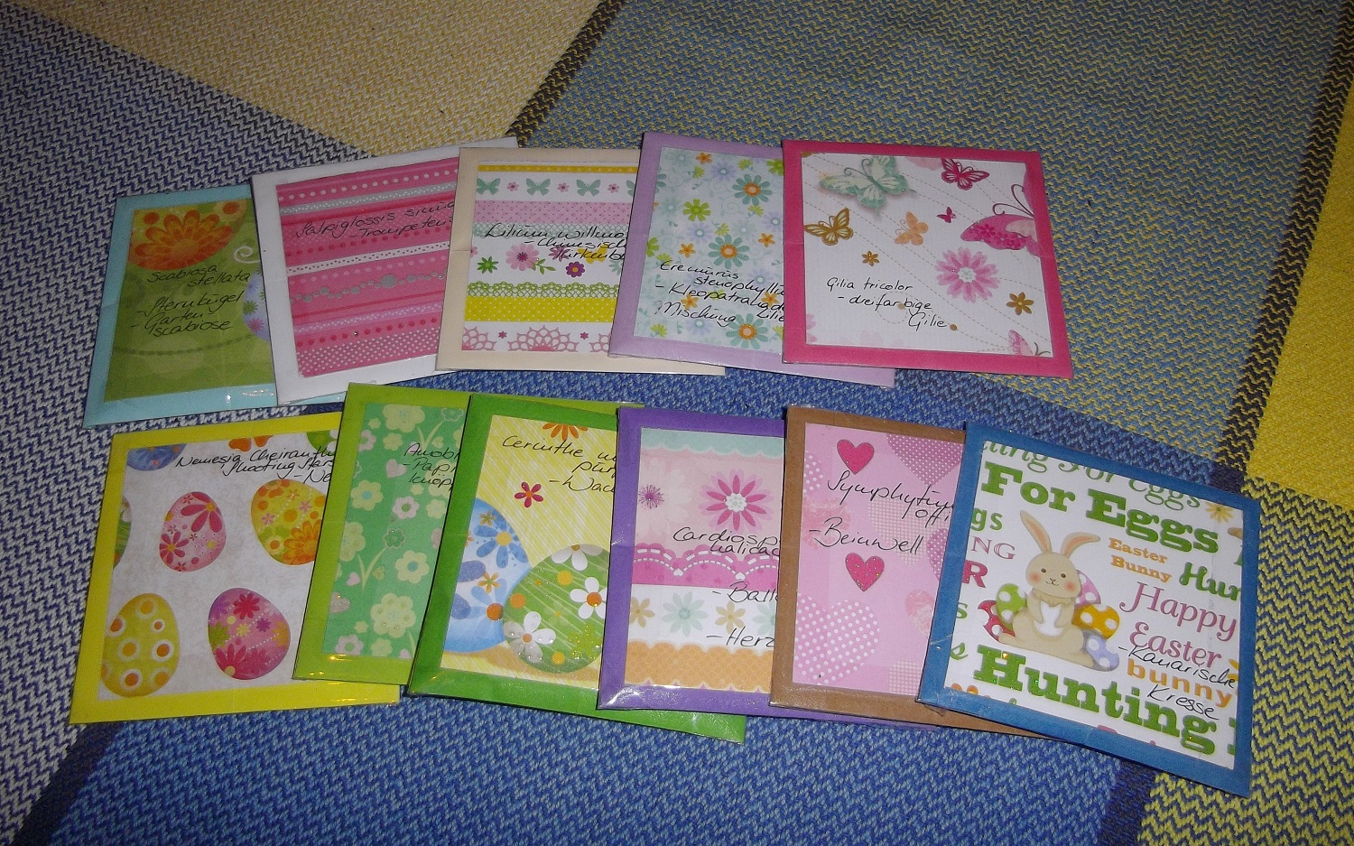 Ich danke dir noch mal herzlichst für die vielen tollen Pflanzen und Samen, sie wandern demnächst in geeignete Erde. Die Schoki hat übrigens nicht lange überlebt und auch die Schokoeier wurden gleich von meinem kleinen beschlagnahmt... genauso wie das süsse Glockenspiel, dass jetzt laut ihm unbedingt in seinem Zimmer aufgehängt werden muss!