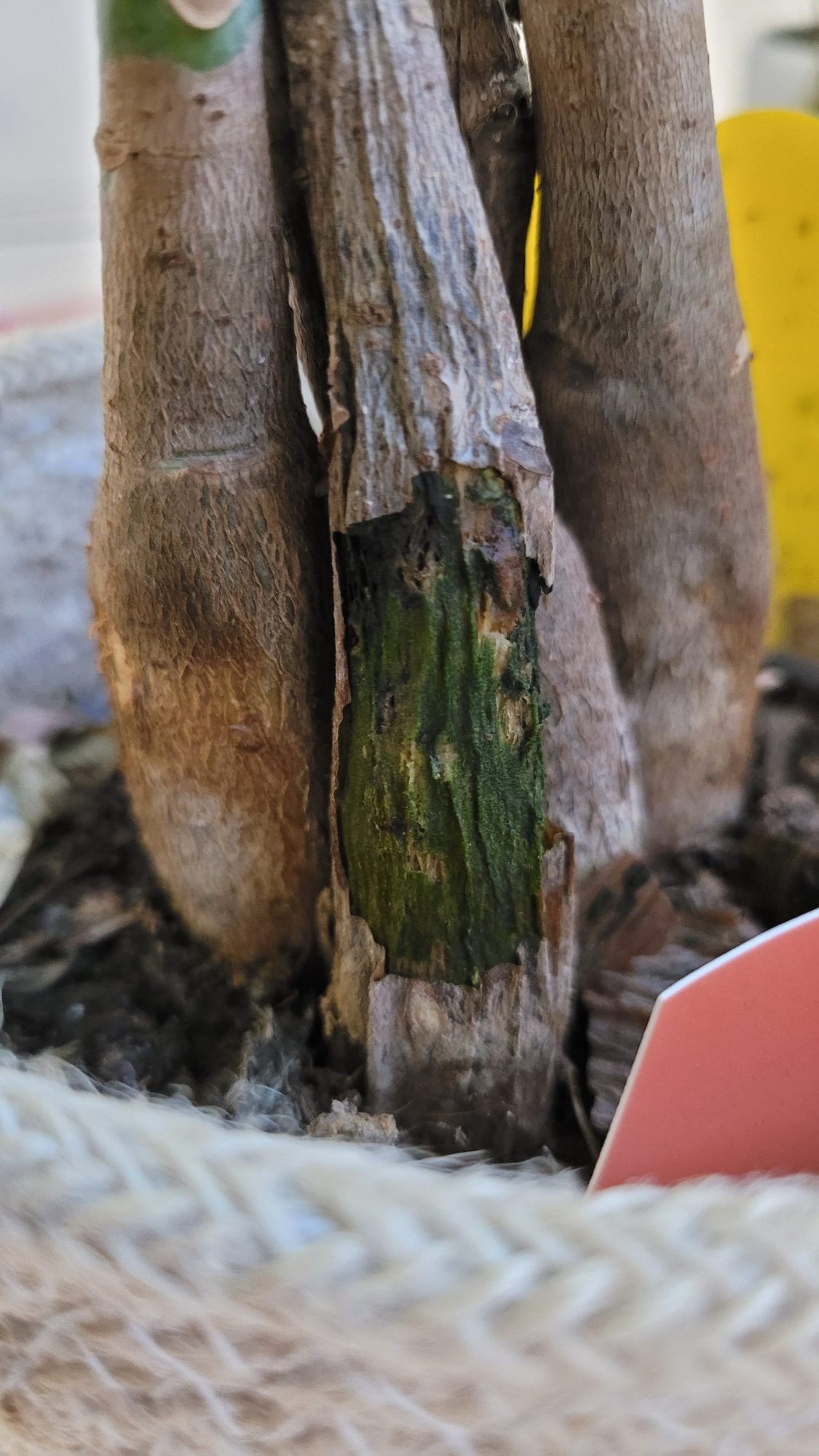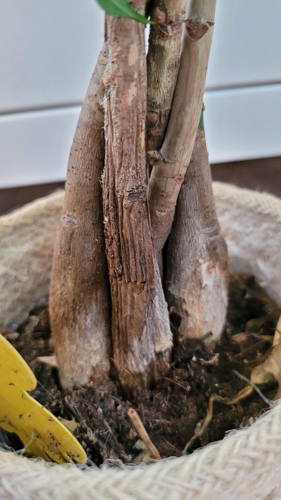 Meiner Zimmerpflanze, eine Pachira aquatica ging es bisher immer sehr gut, aber jetzt habe ich gesehen dass zwei ihrer fünf Stämme zum Teil etwas schrumpelig sind. (Das sieht man auf den Fotos.) Die oberste Rinde ist weich und auch etwas locker, diese würde sich vermutlich entfernen lassen.