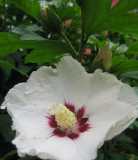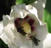 weiße Hibiskusblüte mit Besuch