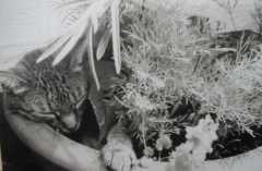 Katz im Blumenpott
