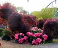 IMG 6715 rote japanische Ahorn und Rhododendron Morgenrot