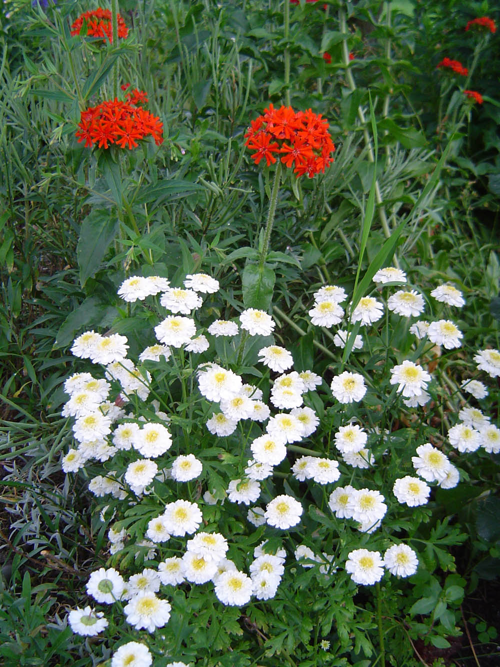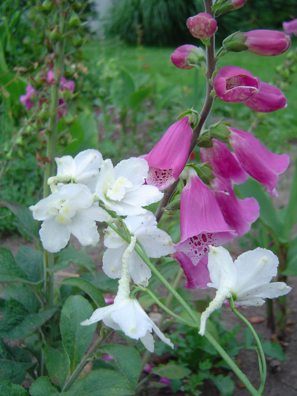 Akelei und Rosen