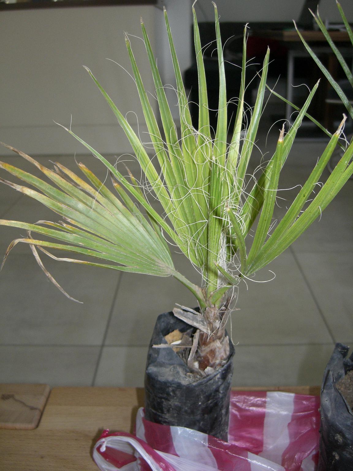 hab mir aus dem Tunesienurlaub 2 kleine Palmen mitgebracht, müsste irgend ne Art von "livistona" sein. Aber bei den vielen verschiedenen Arten von Fächerpalmen bin ich echt überfragt.