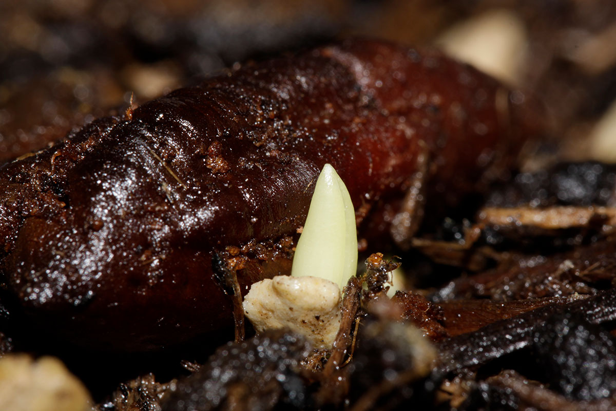Dadurch «inspiriert» konnte ich es mir Anfang Jahr nicht verkneifen, ein paar Medjool-Dattelkerne zu behalten. Erst liess ich sie etwa eine Woche in Wasser rumliegen, bevor ich sie ca. Mitte Februar in einen Keimbeutel und später, nachdem eine Wurzel erschien, in Töpfe packte. Heute nun habe ich entdeckt, dass die erste zu spriessen beginnt und ich freue mich auf eine weitere Palme in meinem Fruchtpflanzensammelsurium.