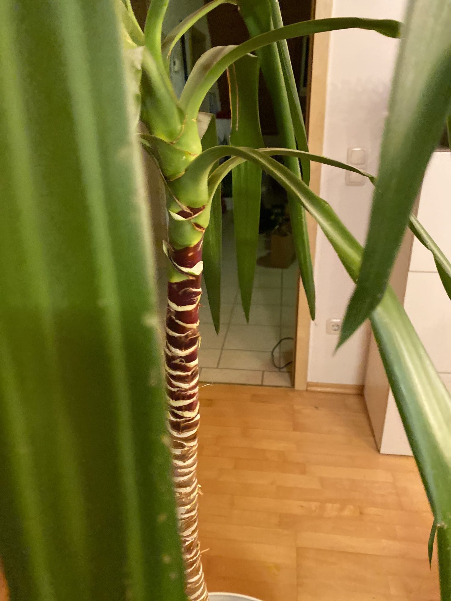 Ich war mir nicht sicher ob sie unter die Yucca-Palme fällt, da sie ja nicht "neben" dem Stamm austreibt sondern einfach in einer Linie gerade nach oben wächst.