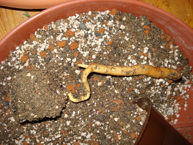 Auf jedenfall sieht die Makalani fit aus, die Wurzel ist top, also habe ich sie nun wieder in den Topf gestellt, gewässert und lasse sie wieder ruhen....