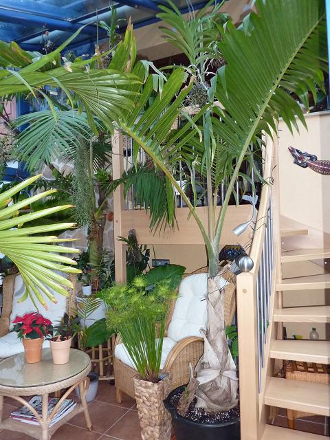 naja, gekauft als üblicher "Grünpflanzen-Mix" ... mir gefielen die Wedel ... und das Hirn net eingeschaltet, und mal nachgesehen, WAS ich da gekauft hatte. Die stand im Sommer im Garten (ausgepflanzt) ... im Herbst hab ich sie dann wieder reingeholt und wollte sie hier schon oft bestimmen lassen, aber irgendwie hat sich das nie ergeben. Und gestern beim Einkaufen im Kaufland, seh ich meine Pflanze und da dachte ich mir, schaust mal nach, ob die ein anderes Etikett dranstehn haben. Und wie üblich (Kaufland macht's wenigstens!) hatten die Ettiketten mit der richtigen Pflanzenbezeichnung. Tja, und seit gestern weiß ich eben, daß ich eine hübsche, kleine (im Moment ziemlich breit werdende) Goldfruchtpalme daheim habe