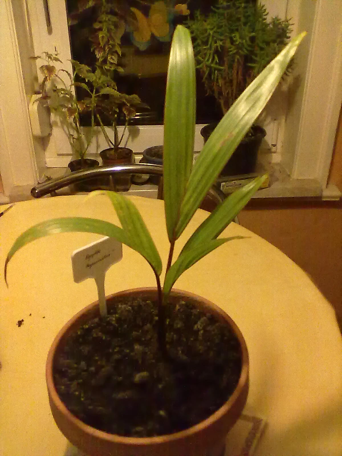Meine Palmen legen im Moment alle kräftig zu, auch die kleine aus dem Wettbewerb. Zudem haben sich bisher 5 Marienkäfer die Palmen für ihren Winterschlaf rausgesucht. Ich muß also ganz vorsichtig sein, wenn ich dran vorbeigehe.