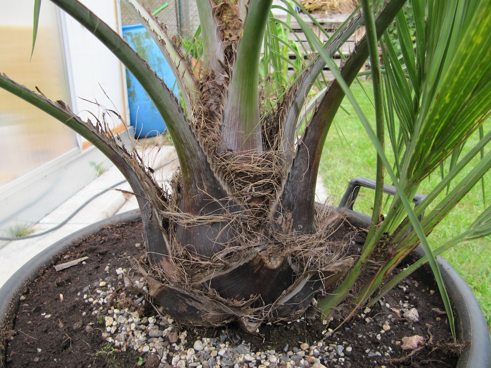 Damit wär ja alles geklärt . Wenn Du vorsichtig bist, kannst Du die kleine Butia da raus friemeln und hast sogar zwei Palmen