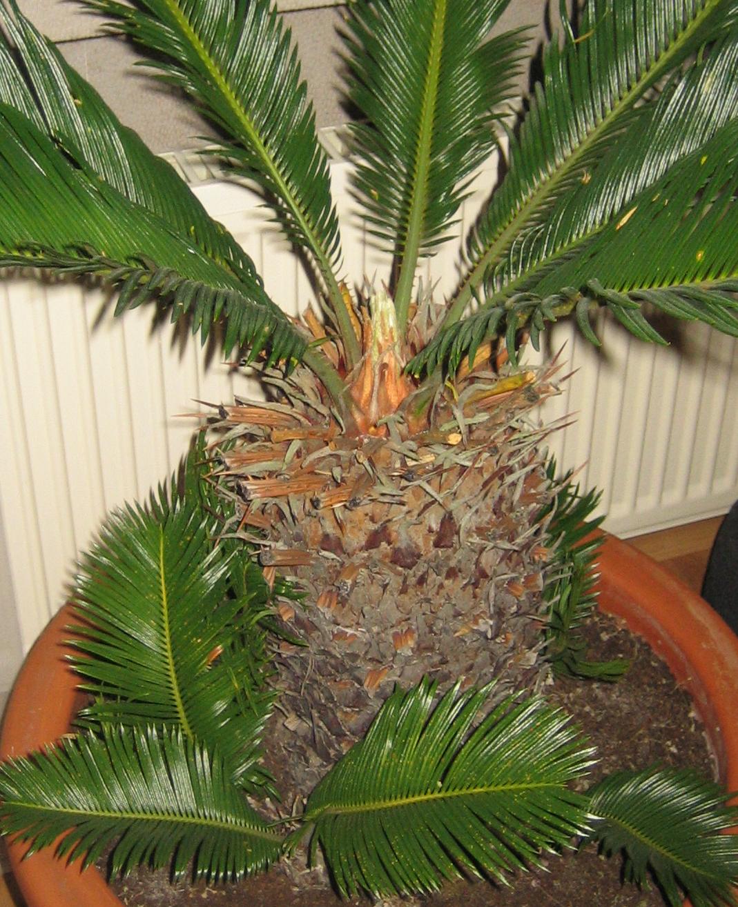 Ich hatte mir auch, vor zwei Jahren, im August 2011, eine Cycas revoluta gekauft. Sie stand seitdem im Wohnzimmer in der Fensterbank. Obwohl sehr sonnig hat sie sich nicht im geringsten weiterentwickelt.
