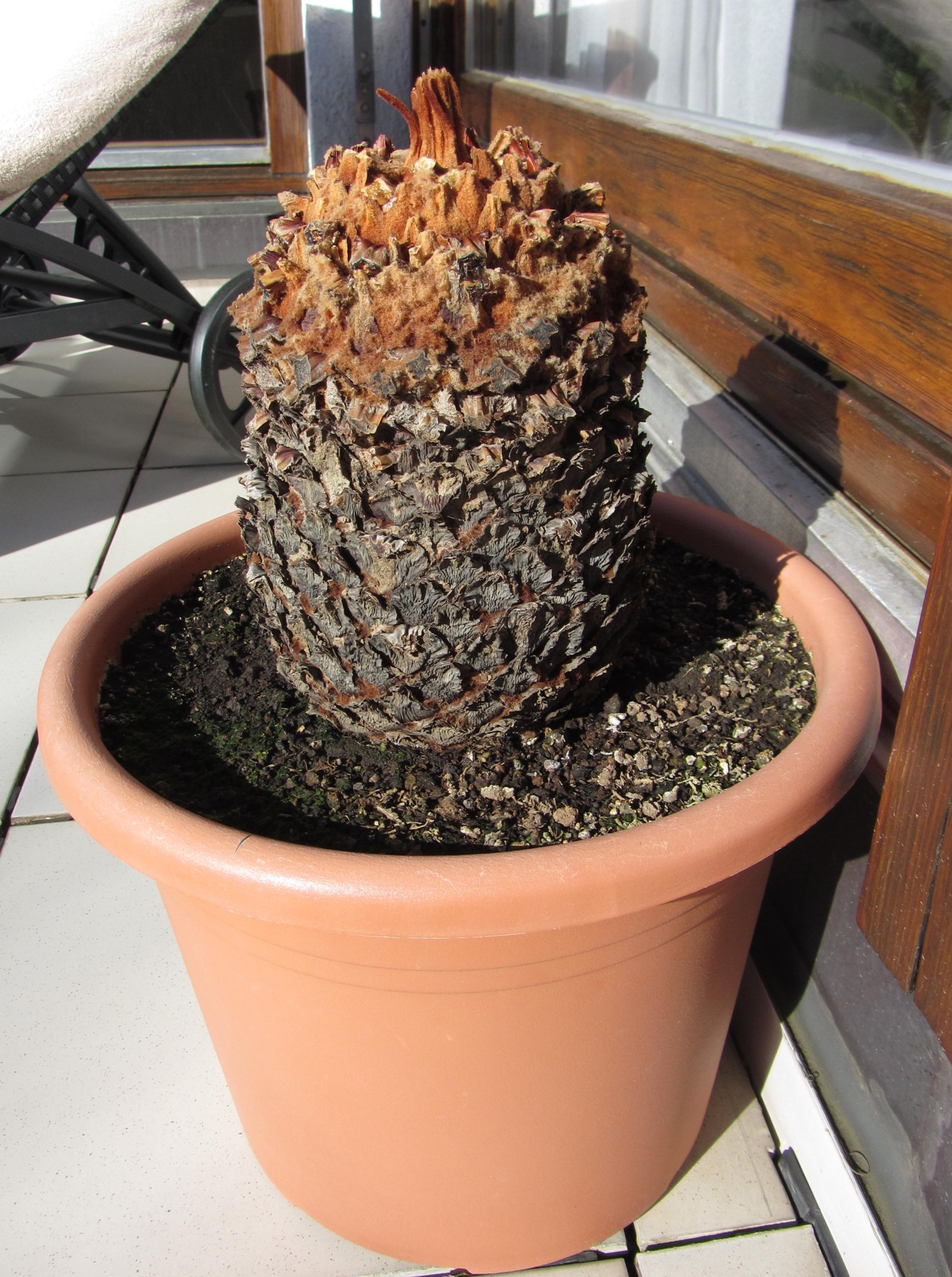 39 abgeschnitte Wedel später kann ma endlich einen Blick auf dem imposanten Stamm werfen.