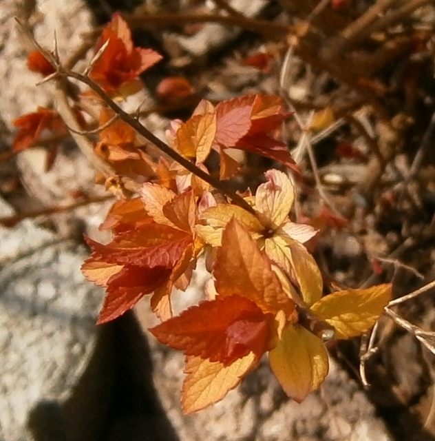 Kupfer- Felsenbirne (einmal Fundsituation im Wald, dann zuhause im Kübel, Detail). Die Pflanze beginnt soeben den Johannistrieb, ist also für die Gartenkultur gewonnen