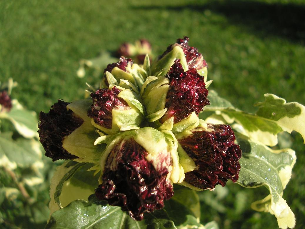 Der panagierte winterharte hibiscus syriacus "Purpureus Variegata" wächst relativ langsam und sollte aber trotzdem jedes JAhr im März ein drittel zurückgeschnitten werden, damit er buschiger wächst. Er blüht im Spätsommer und wird maximal 1,5 m hoch.