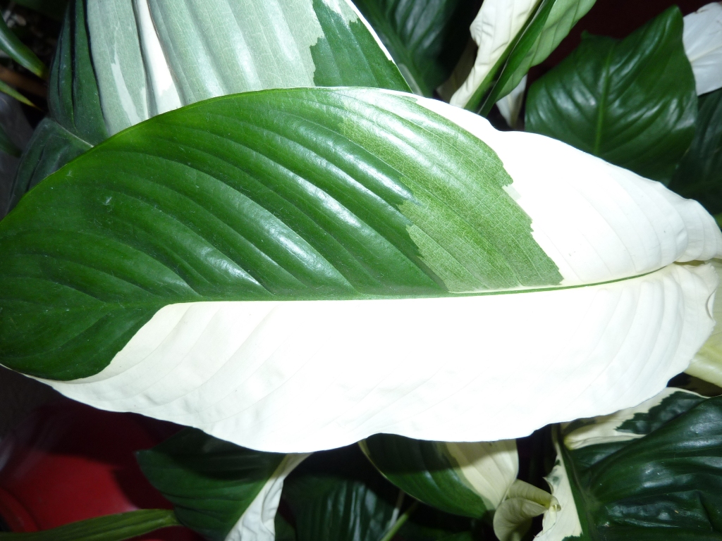 Die variegata wächst wirklich langsam, was ja auch Sinn macht. Einige Blätter kommen reinweiß zum Vorschein, diese sind sehr empfindlich, nicht nur gegen Sonneneinstrahlung, sondern sie vertrocknen auch einfach mal so. Weiße Blätter bleiben auch immer kleiner, interessant ist auch, dass sich weiße Bereiche am Blatt nicht einwandfrei entwickeln. Dadurch ist das Blatt häufig in die Richtung gekrümmt.
