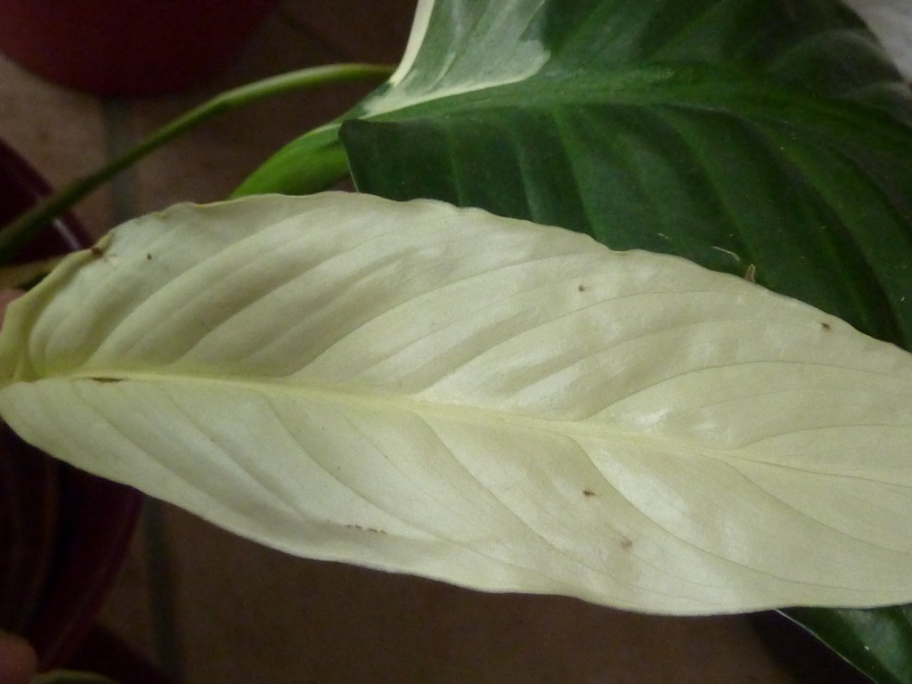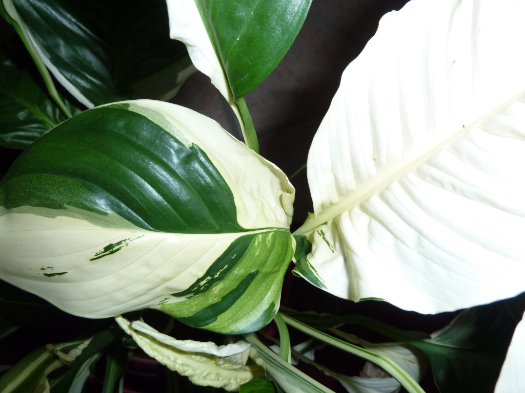 Die variegata wächst wirklich langsam, was ja auch Sinn macht. Einige Blätter kommen reinweiß zum Vorschein, diese sind sehr empfindlich, nicht nur gegen Sonneneinstrahlung, sondern sie vertrocknen auch einfach mal so. Weiße Blätter bleiben auch immer kleiner, interessant ist auch, dass sich weiße Bereiche am Blatt nicht einwandfrei entwickeln. Dadurch ist das Blatt häufig in die Richtung gekrümmt.