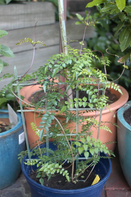 ..ein Farn ist das nicht. Der einzige Farn, der sich an Fremdpflanzen "hochlümmelt", kann ggf. der Adlerfarn sein, der das aber nur im Alter (mit bis zu 4 m hohen Wedeln) tut und in der Jugend ganz anders aussieht. Eine Pandorea scheint das aber auch nicht zu sein, da hatte ich `mal eine, die ganz anders beblättert war... ich gucke in den nächsten Tage mal in diversen Büchlein